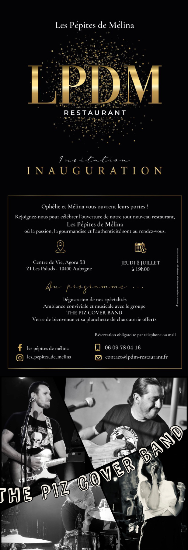 Au 06 09 78 04 16 ou par mail : contact@lpdm-restaurant.fr